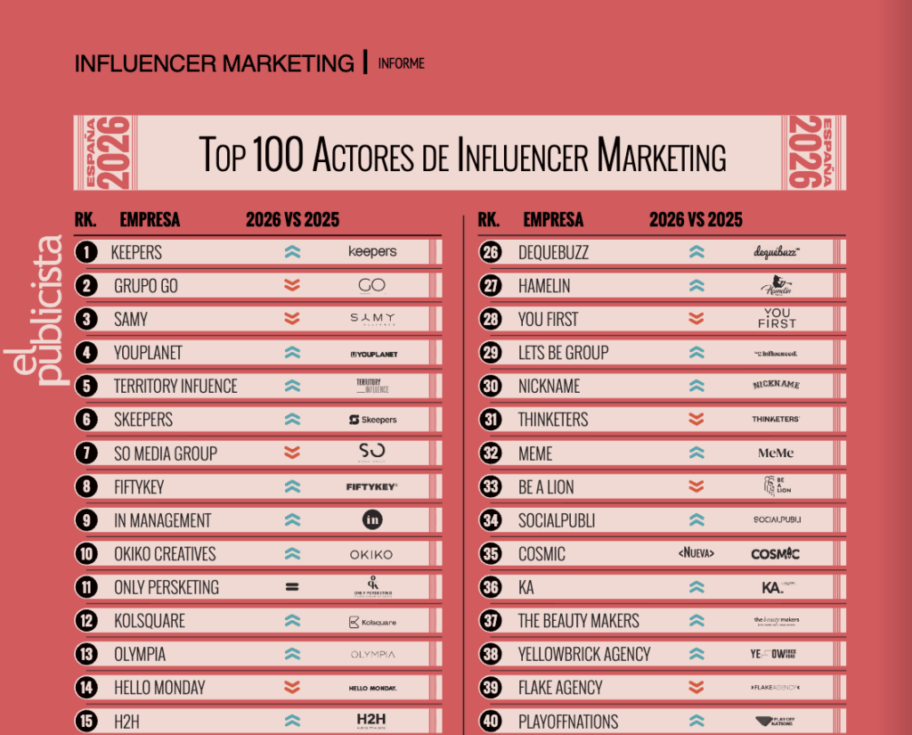 El Publicista ha anunciado recientemente su ‘TOP 100 de actores del influencer marketing’, un listado que reconoce a las agencias más influyentes y destacadas del sector. En esta edición, Keepers ha alcanzado el puesto número 1, consolidándose como líder absoluto en influencer marketing creativo y estratégico.